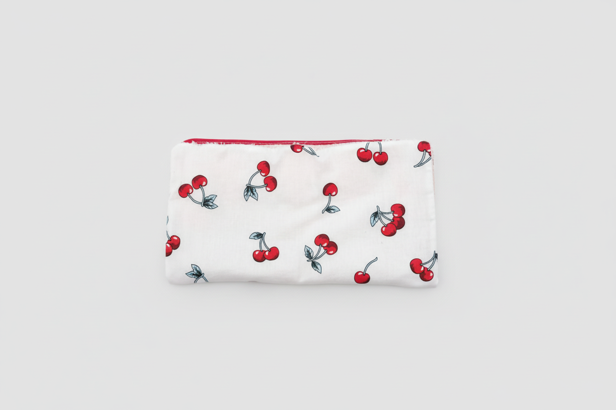 Découvrez notre pochette réversible aux dimensions parfaites pour vos déplacements (30 x 15 cm). Confectionnée en coton doux, elle arbore un motif principal de cerises gourmandes et se décline en variantes chats, oiseaux et bien d'autres. Doublée pour plus de protection, elle accueille une poche intérieure supplémentaire idéale pour ranger votre maquillage et vos petits trésors fragiles en toute sécurité. Personnalisez couleurs et tissus selon vos envies pour une pochette unique qui vous ressemble !